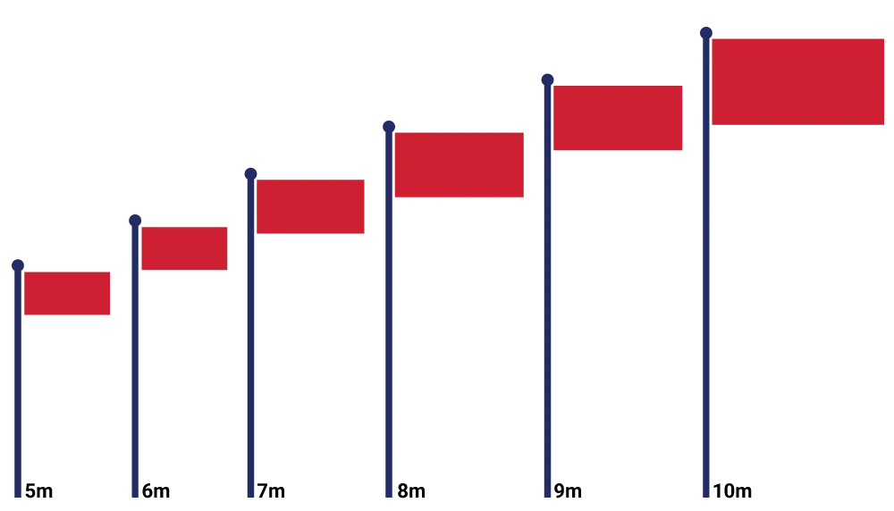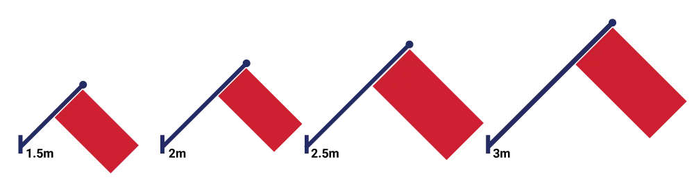Available Sizes: From ½ yard up to 3 yards – 12 different sizes to suit every flagpole.